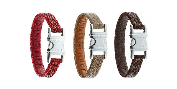 JOHN-LINK© Signe une nouvelle ligne de bracelets chics et modernes. Aussi bien pour les hommes, que pour les femmes, ces bracelets sont faits avec des matières nobles et précieuses. Cette ligne haut de gamme, se décline dans de nombreuses couleurs et matières. Vous pourrez adapter sur votre bracelet tous les LINKS (liens souples) de la collection, car ils sont tous interchangeables. En édition limitée.